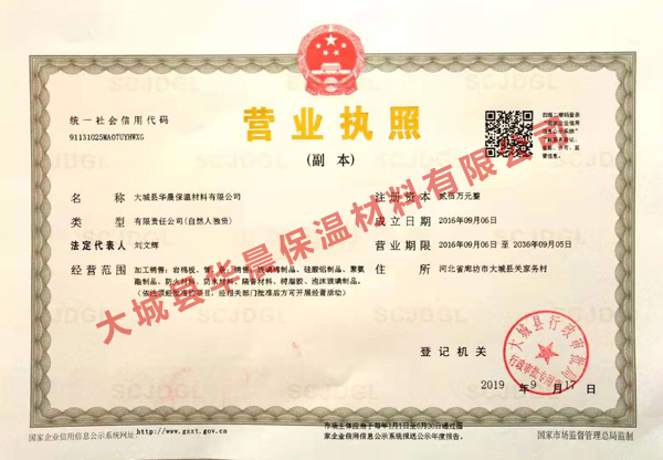 大城縣華晨保溫材料有限公司正式在工商局注冊于2016年9月6日,注冊資金200萬元人民幣。公司總部設在“中國綠色保溫建材之都”河北大城,占地60000平米,現年產巖棉制品6萬噸。